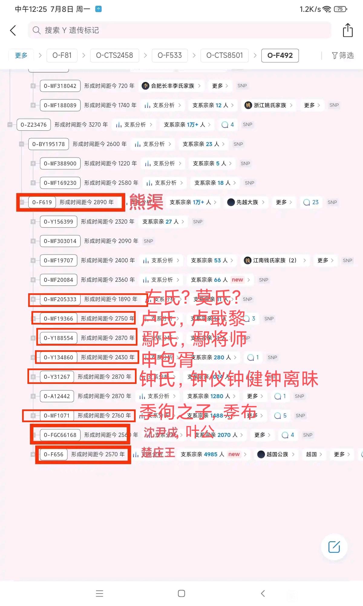 大体可以看出浙江、闽客和台湾原住民三个群体的母系B4的分化演变关系